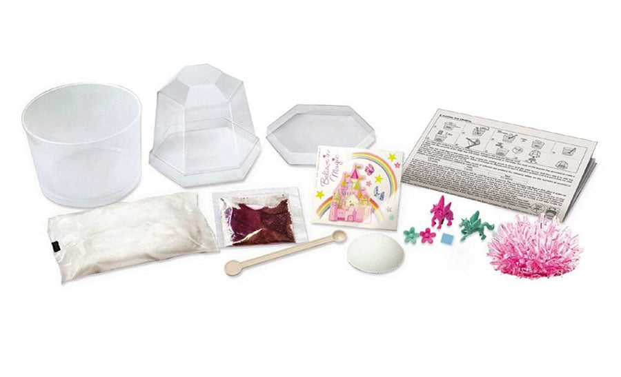 Grow your own Crystal and make a magical unicorn wonderland. The kit contains white crystal compound, red colourant, a 5cm crystal base, a sticker, display case, stirring spoon, stirring bowl, miniature unicorn and flowers for decoration.Detailed instructions included.Crystal will grow approximately 5cm in diameter and 4cm high. However the shape and colour may vary, depending on the experiment conditions. 17cm x 17cm x 9cmAge: 10 yrs+