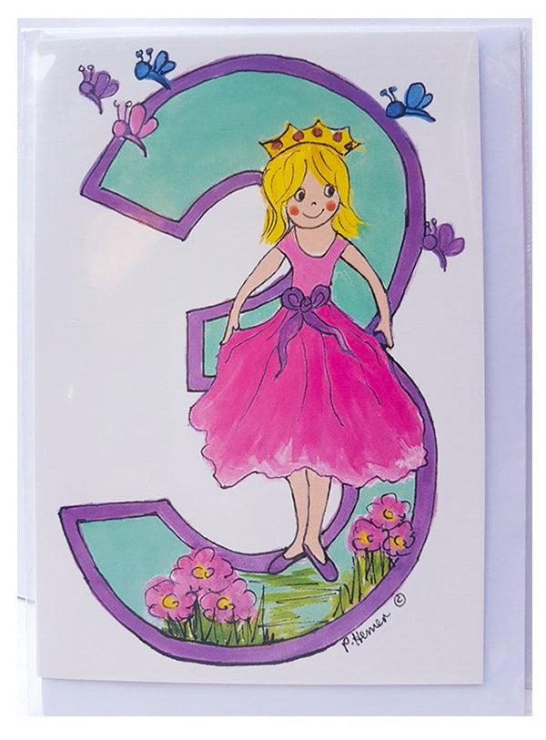 Australian Designed Number Birthday Card with a happy little PrincessBy popular Australian Artist Paulene Hemer.Blank Inside. Includes envelope. Suitable for One year Old