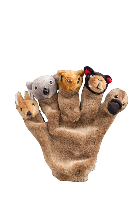 Not one but five Australian animals all on the one glove. An animal for each finger. Kangaroo, Koala, Possum, Tasmanian Devil and Platypus! Ideal for story telling and very well priced.