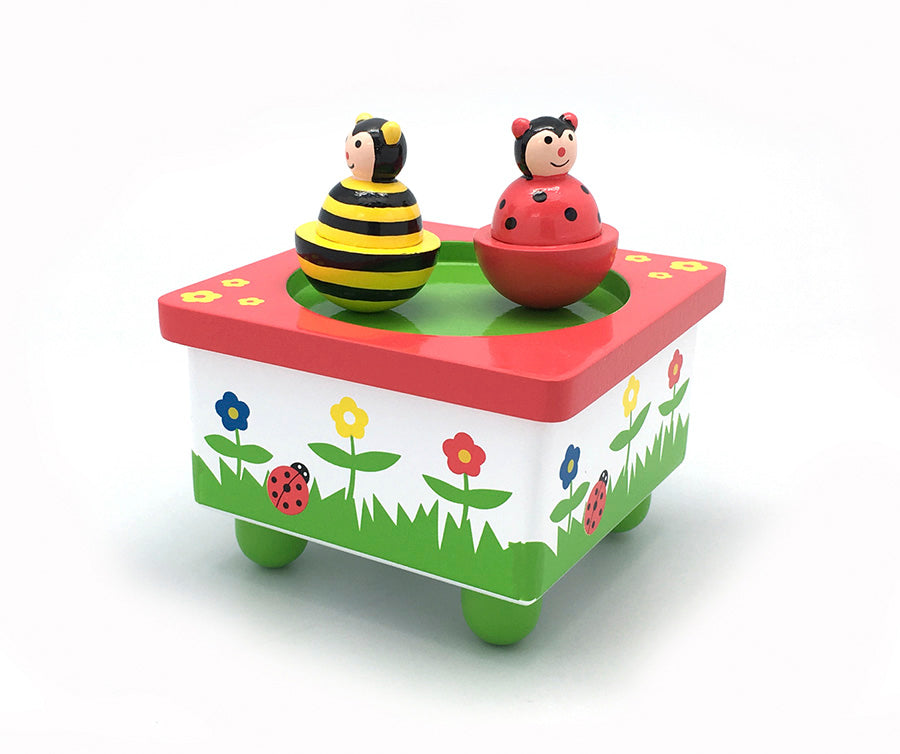 Both the bee and ladybird are magnetic and will spin round and round when the music