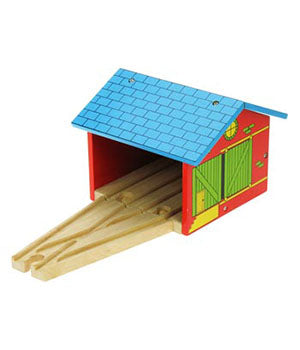 There's room for two engines in this wooden shed. Supplied complete with a piece of splitter track to direct each engine to its resting place. In addition, the detachable roof lets young mechanics easily oversee any repairs or maintenance that needs to be carried out. A great way to encourage role play sessions. Consists of 3 play pieces and is compatible with other leading wooden rail systems. Age 3+