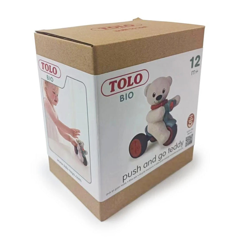 This toy is designed to be durable, even in the most demanding of play environments. Its surface is smooth and shiny, with no sharp edges. Its plastics are also BPA and phthalate free. This means that every parent can rest, assured that the Bio Push & Go Teddy is safe for children. Tolo Toys products really built to last.