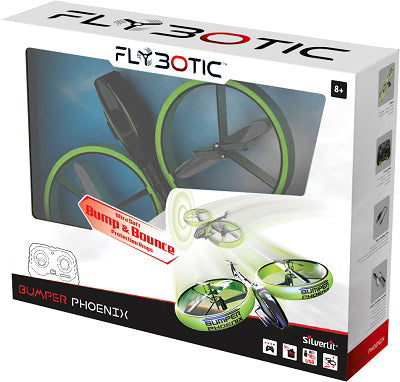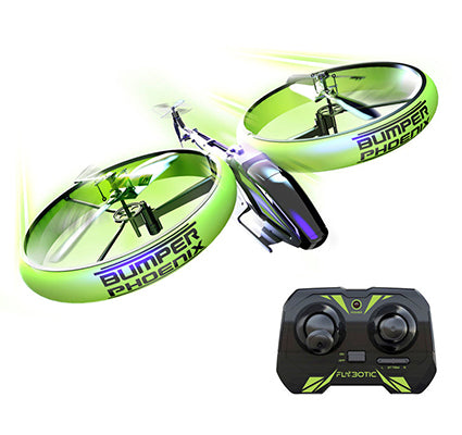 Silverlit Flybotic Bumper Phoenix RC Helicopter is a rechargeable sci-fi design lightweight drone with 3-Channel 2.4G control. It has a pair of Iconic Bumper Rings for extra protection. You can precisely control the speed with excellent flying stability and it’s easy to operate. Suitable for Indoor and Outdoor play. It includes bumper phoenix: 1 rechargeable Li-PO battery transmitter 8 Years +