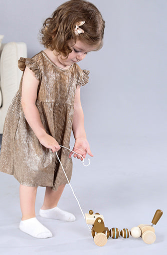 As your child learn to walk, they can pull along this adorable companion wherever they go. Always up for walkies and easy to please, the pull along sausage dog from Calm & Breezy by Kaper Kids gently bounces and wags its tail as it is pulled along.Whether its a stroll around the house, garden or out and about on an adventure, this cute little pup is a joy to watch bounding about on his wheeled legs.This little companion encourages children to develop their gross motor skills and gives them a cute companion to pretend play with. Each wooden Pull Along Sausage Dog from Calm & Breezy by Kaper Kidz is made from timber and finished to the highest quality and painted in child safe, non toxic paint.(NG23540)