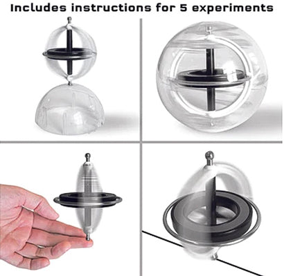 The Thames and Kosmos Gyroscope is a timeless scientific instrument has been reimagined in a fresh, new design.Experiment with the gyroscope to learn about the physics of motion, forces, and gravity. Learn about gyroscopic forces, and see and feel them in action. Have fun getting your gyroscope to do classic physics tricks. Make the gyroscope balance on a tabletop, on a stand, and on a string. Spin the gyroscope inside the included clear plastic sphere and see and feel the forces acting on the sphere, which doubles as a storage case for your gyroscope.Measures 7.5 cm diameterEach gyroscope includes a clear plastic sphere (also functions as a stand and a storage case), a 75cm easy-to-thread string, and an instruction manual.Recommeded for ages 8 years +