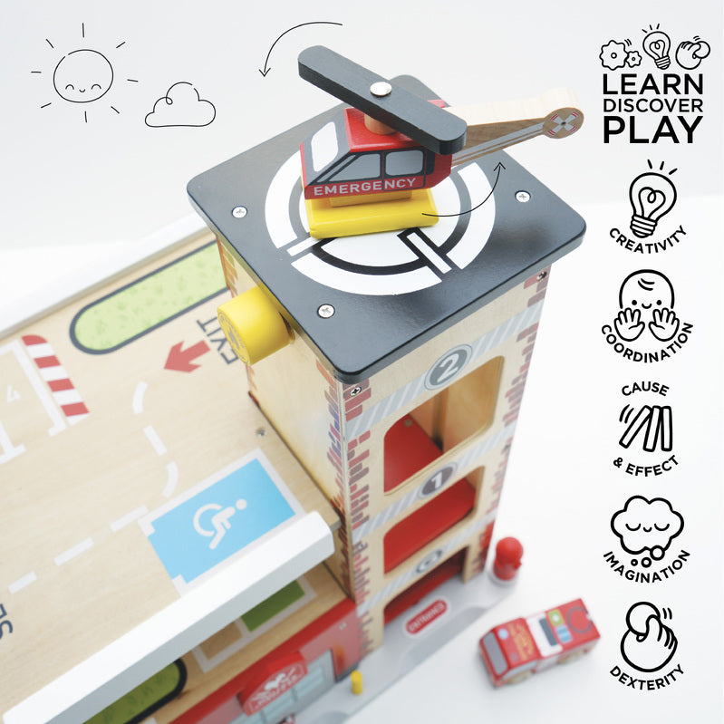 Fuel a child's imagination with this fun fire & rescue garage. Made from durable, FSC®-certified wood, this engaging toy is the perfect fire and rescue headquarters for a little hero.