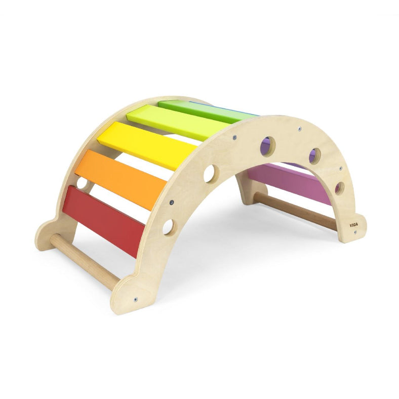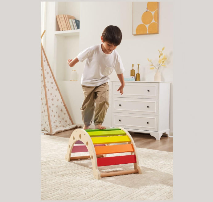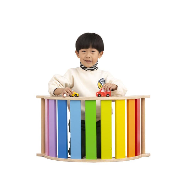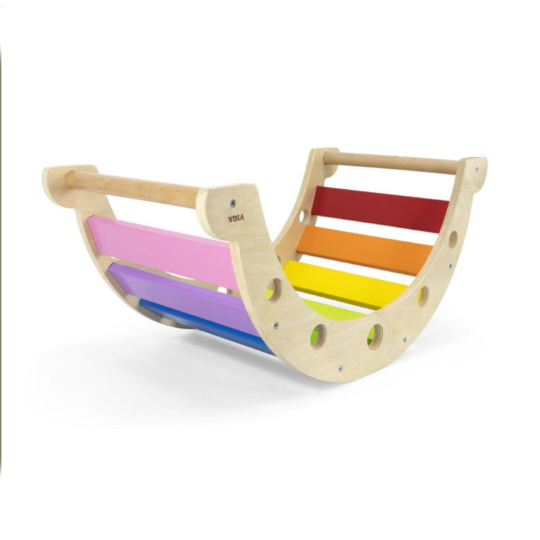 This colourful rainbow rocker by Viga is one amazing open-ended toy. Children will use it in different ways, many of which will surprise you. A tunnel, a boat, a bed, house… there are no limits to the combination of their imaginations and the versatility of this toy. Children can use this to balance and get comfortable with their bodies. Physical play lets them to be aware of their movements and allows them to channel their large amounts of energy into crucial gross motor play.