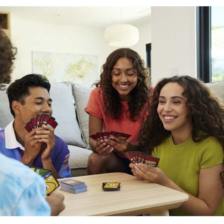The Stacking Rule lets players pass the penalty (Draw +2, +4, +6, +10) to the next player until whoever can't play has to take all the cards combined!