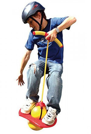 Flexible, freestyle pogo stick with inflatable bounce ball (replacements available) and elastic cord to hold and control balance. Maximum weight 65kg. Age 8+