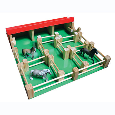 This Australian Handmade Wooden Stable with Yard is the best of both worlds. Featuring three stables and a cattle yard , perfect for the budding equine farmer. This once in a lifetime gift is promised to last a lifetime!The highest calibre of wood has been used, and makes the intricate wooden toys to meticulous quality standards. Your child, grandchild and great grandchild will fall in love with the stable/ cattle yard, and hand it down through generations. Ages 2+