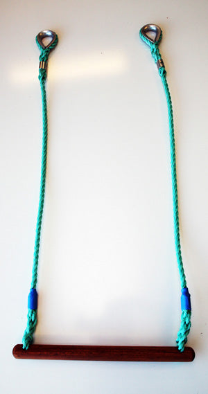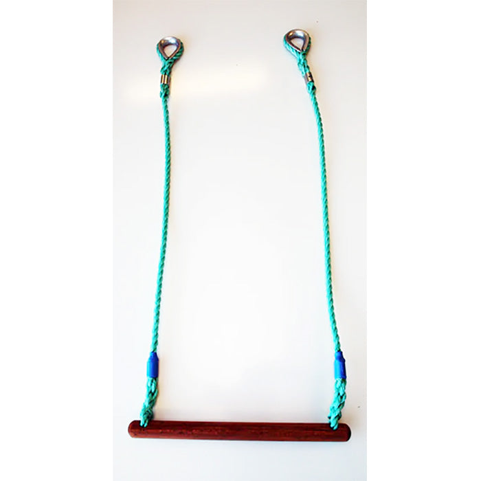 A wooden trapeze swing for all those budding acrobats! It has UV treated ropes with enclosed thimbles and is suitable for attaching to a 2.2m high swing frame.Great fun for beginning gymnastics.• 12mm UV stabilised polypropylene rope• 45cm long dowel• Spliced thimbles for easy hanging• Suits swing frame height of 2.2m• maximum weight 55kg• Australian made and compliant Ages 3 and Up